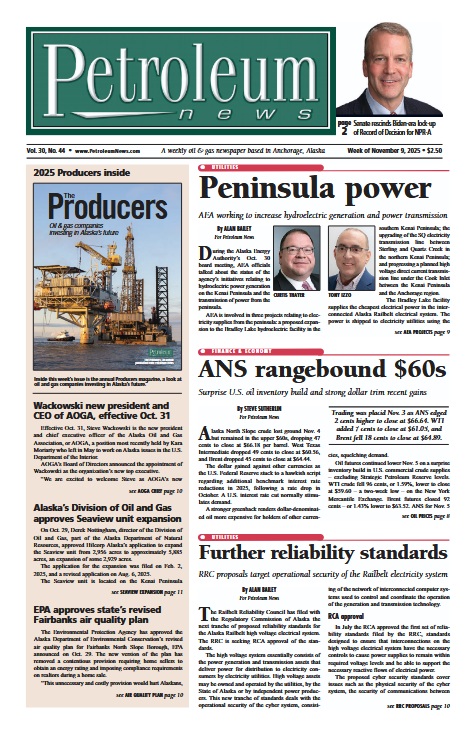 Copyright: The content of this web site including over 37,000 articles in the searchable archive may not be copied, replaced, distributed, published, displayed or transferred in any form or by any means except with the prior written permission of Petroleum Newspapers of Alaska, LLC (Petroleum News)(PNA). Copyright infringement is a violation of federal law subject to criminal and civil penalties.